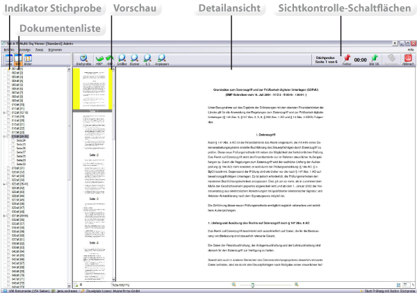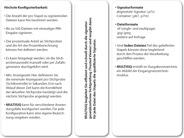 Mittels MULTISIQ werden gescannten Dokumentenstapel einer rechtskonformen Stichprobenprüfung unterzogen und per sicherer PIN-Eingabe qualifiziert elektronisch signiert: